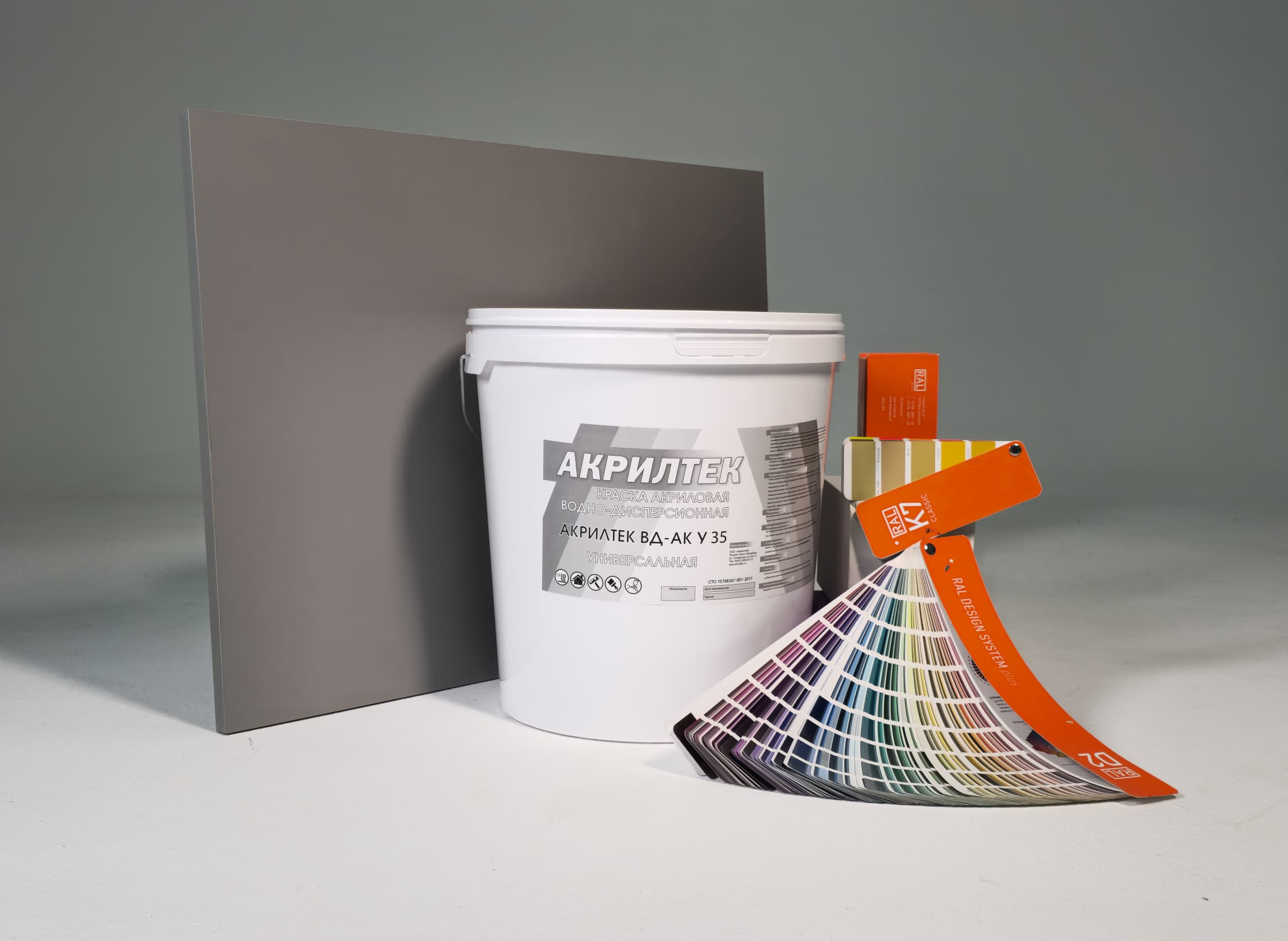 Краска для стен без запаха быстросохнущая моющаяся АКРИЛТЕК ВД-АК У 35 с специальными добавками которые защищают краску от образования грибка в мокрых зонах.